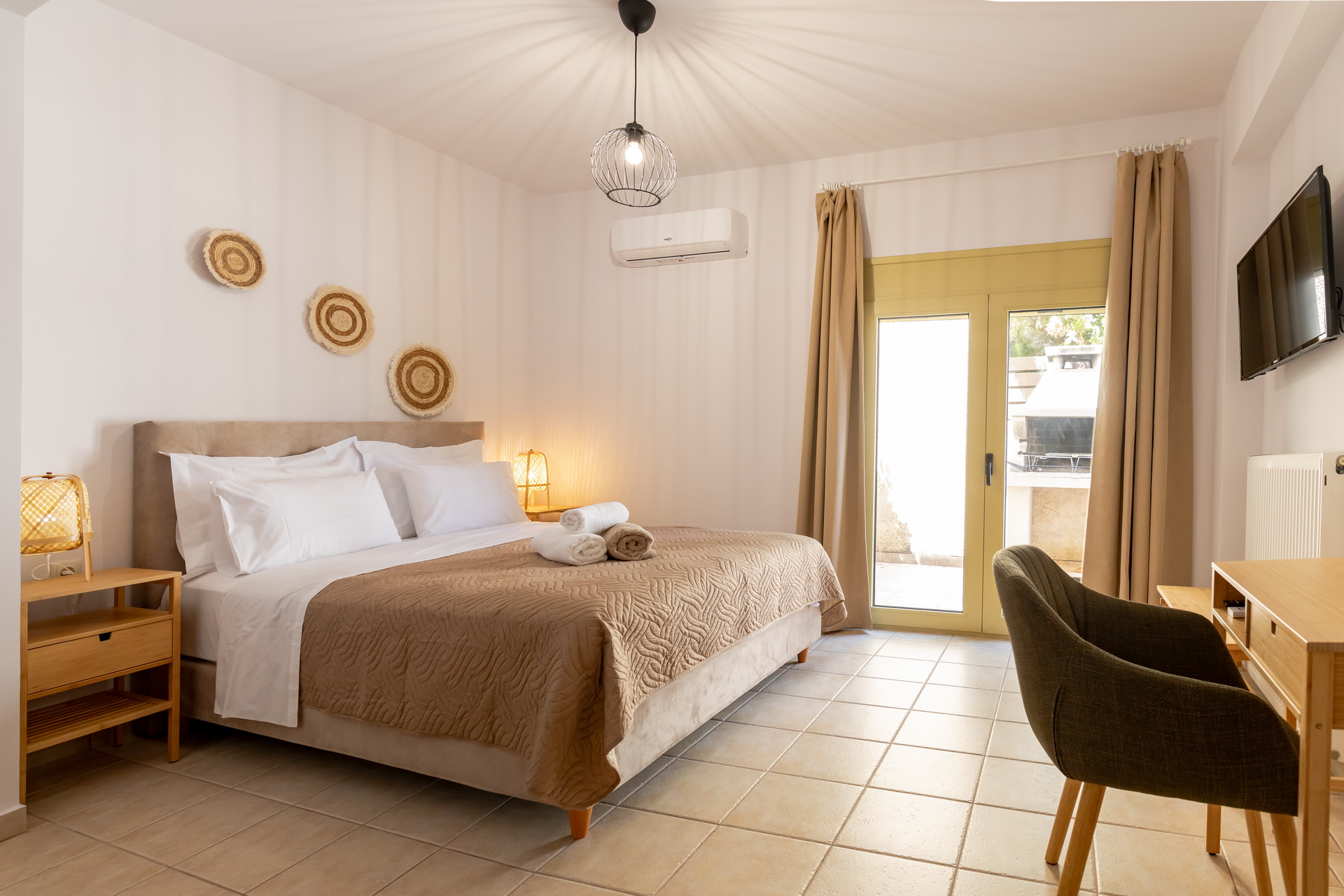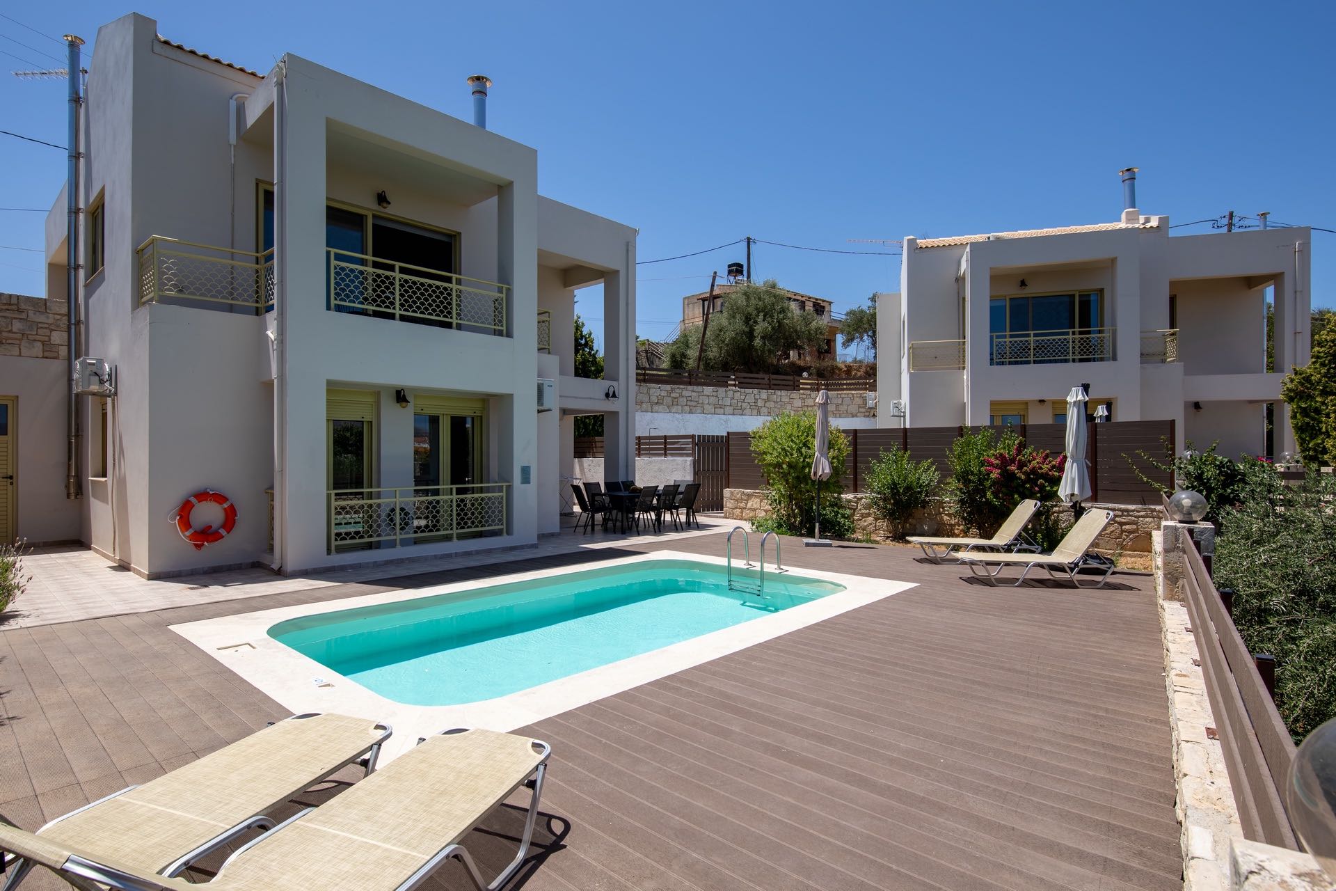 The villas are built on the north coast of Crete and are situated over an olive grove just 1 km outside the seaside village of Tavronitis with the long sandy beach. The villas offer panoramic views of the green valley and the Cretan sea, just 20 minutes drive from the famous city of Chania